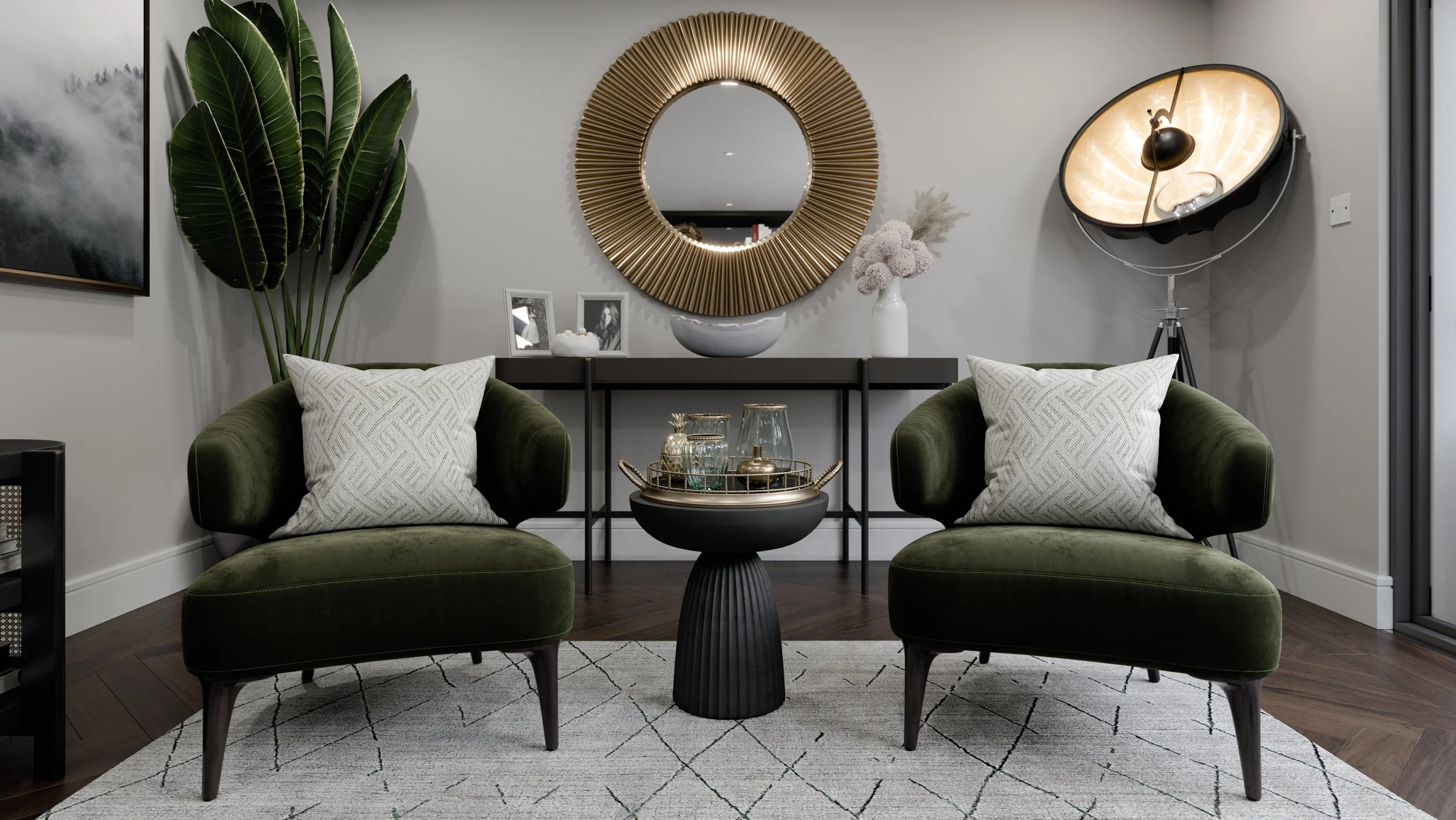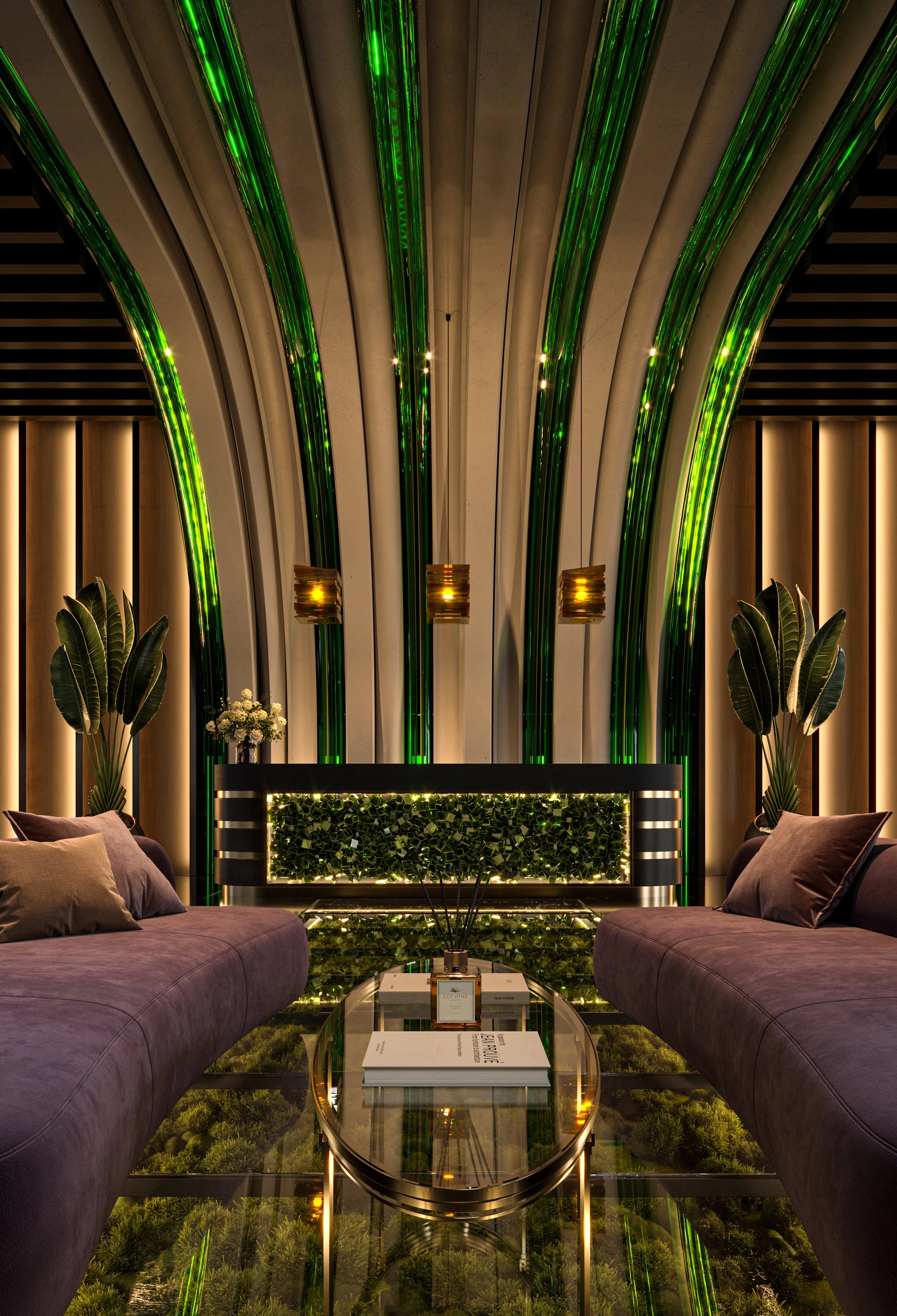 Forest Green Tropical Living Room Interior Design 3D Visualization Rendering