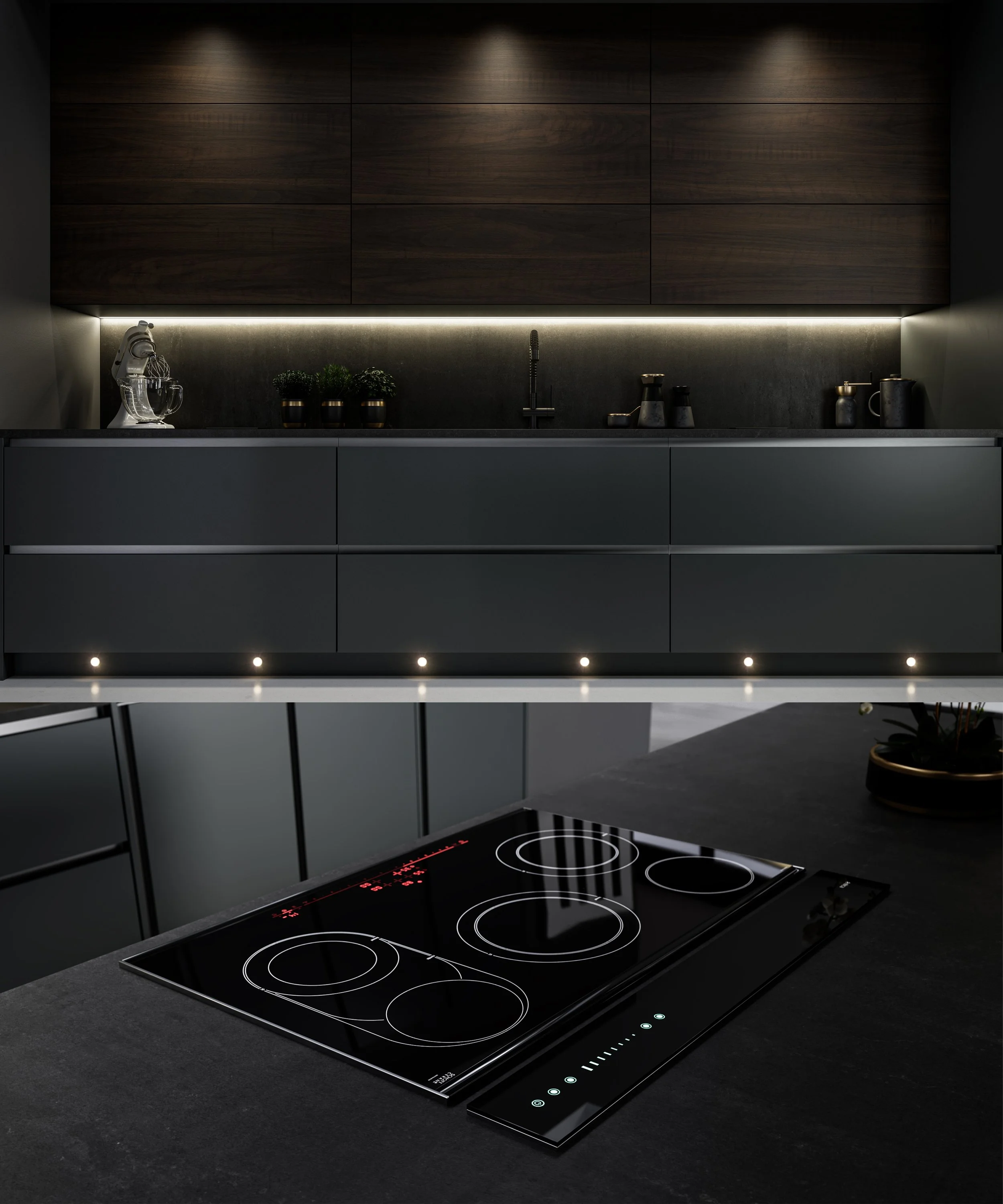 Minimal Black Modern 3D Kitchen CGI Visaulization Rendering
