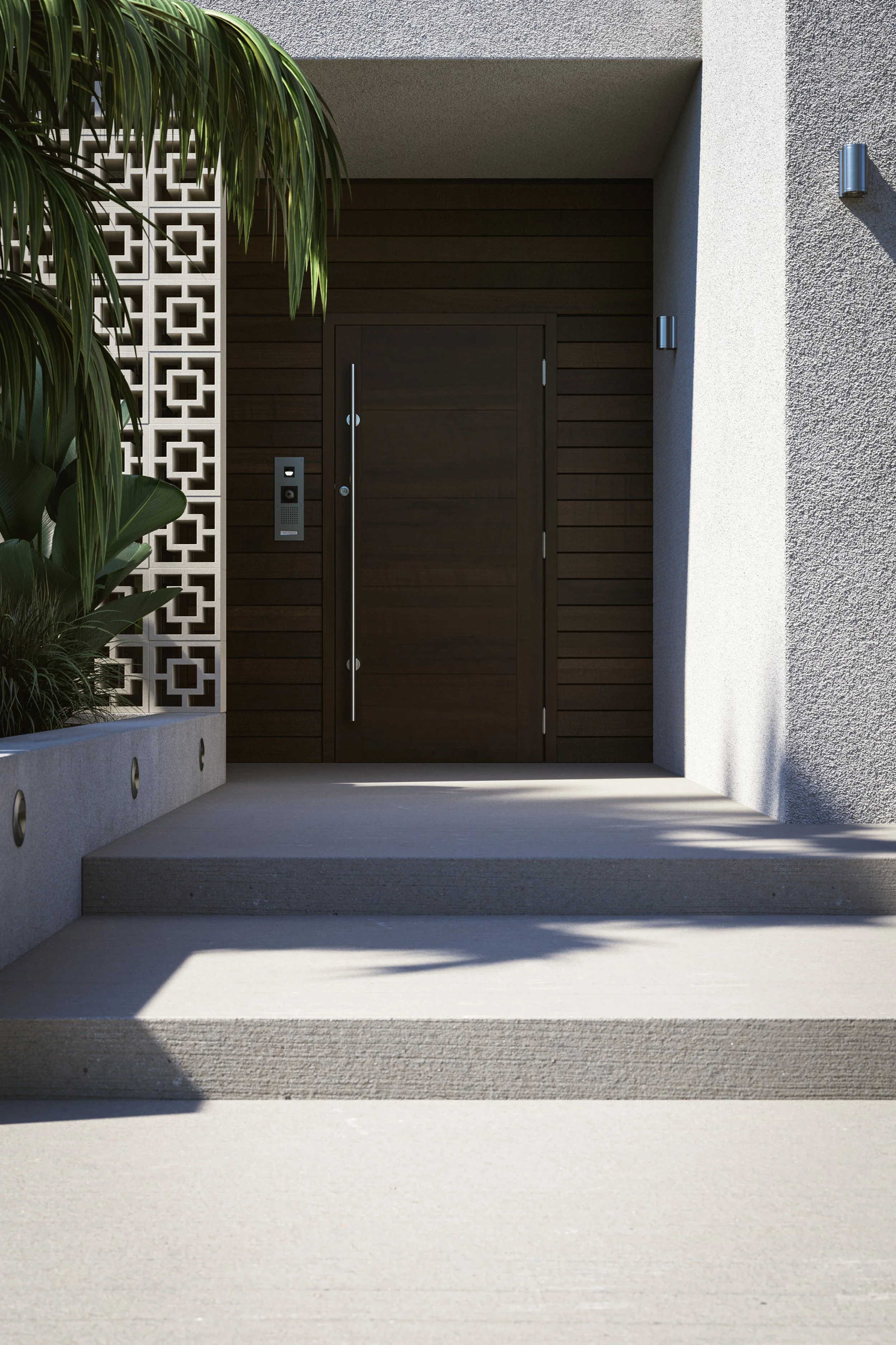 Exterior Visualisation Rendering Entrance Door Palm Trees Summer View fullsize