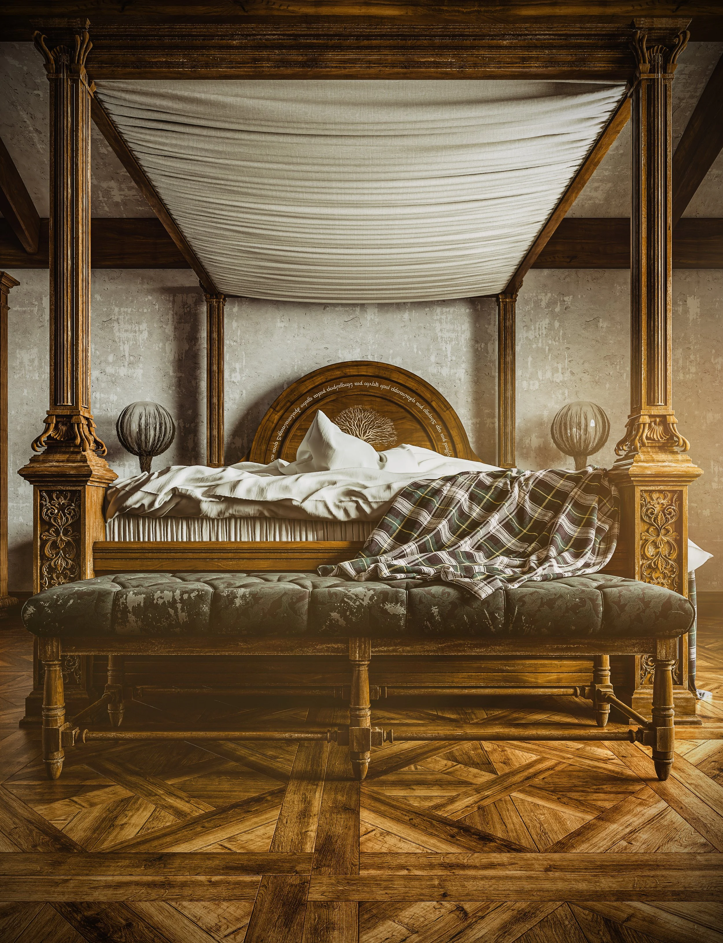 Artistic The Hobbit Bedroom Interior Design 3D CGI Visualization Rendering Evening Moody