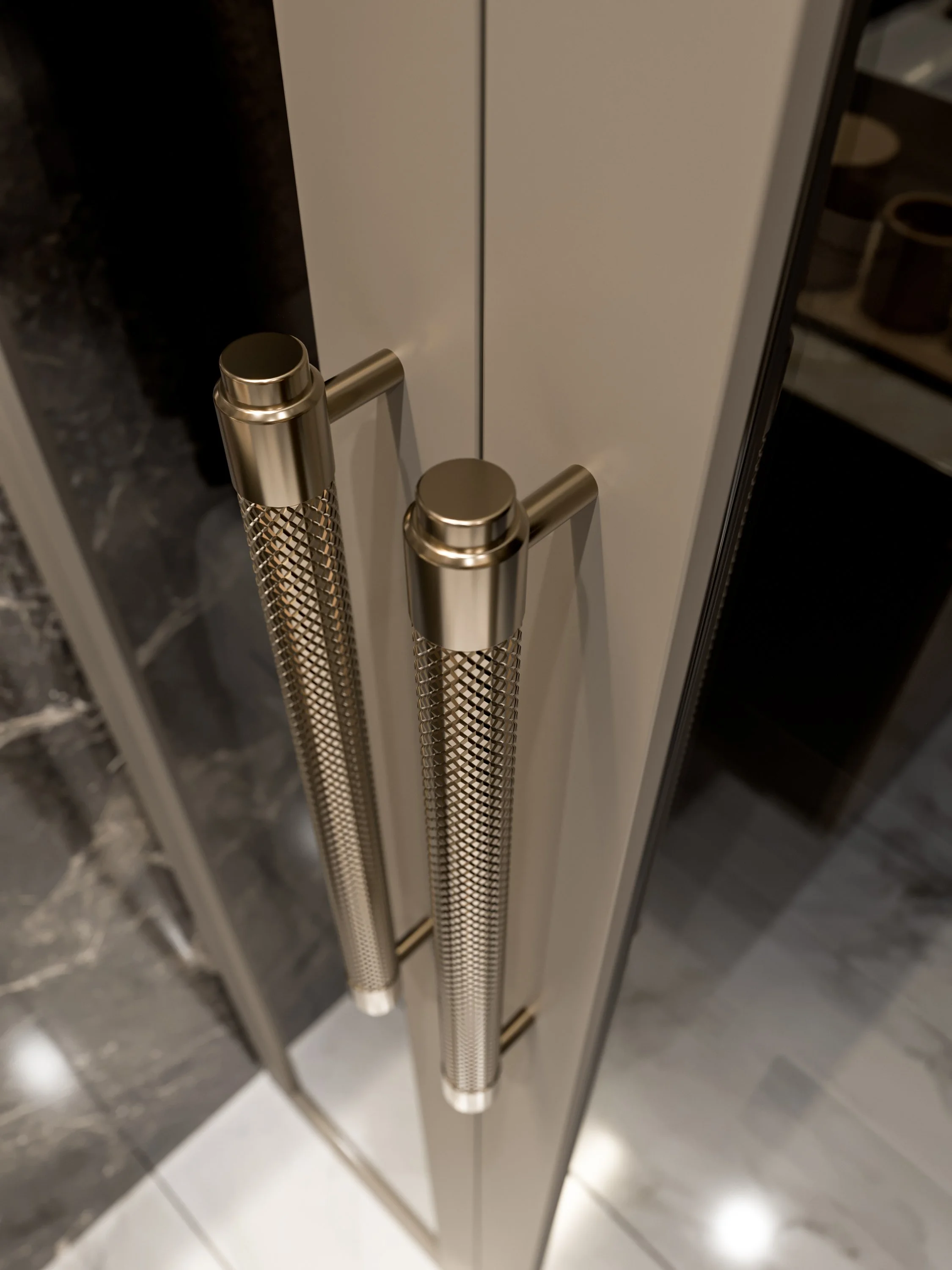 Wardrobe Design Interior CGI Visualization Render White Marble Mirror Closet View fullsize