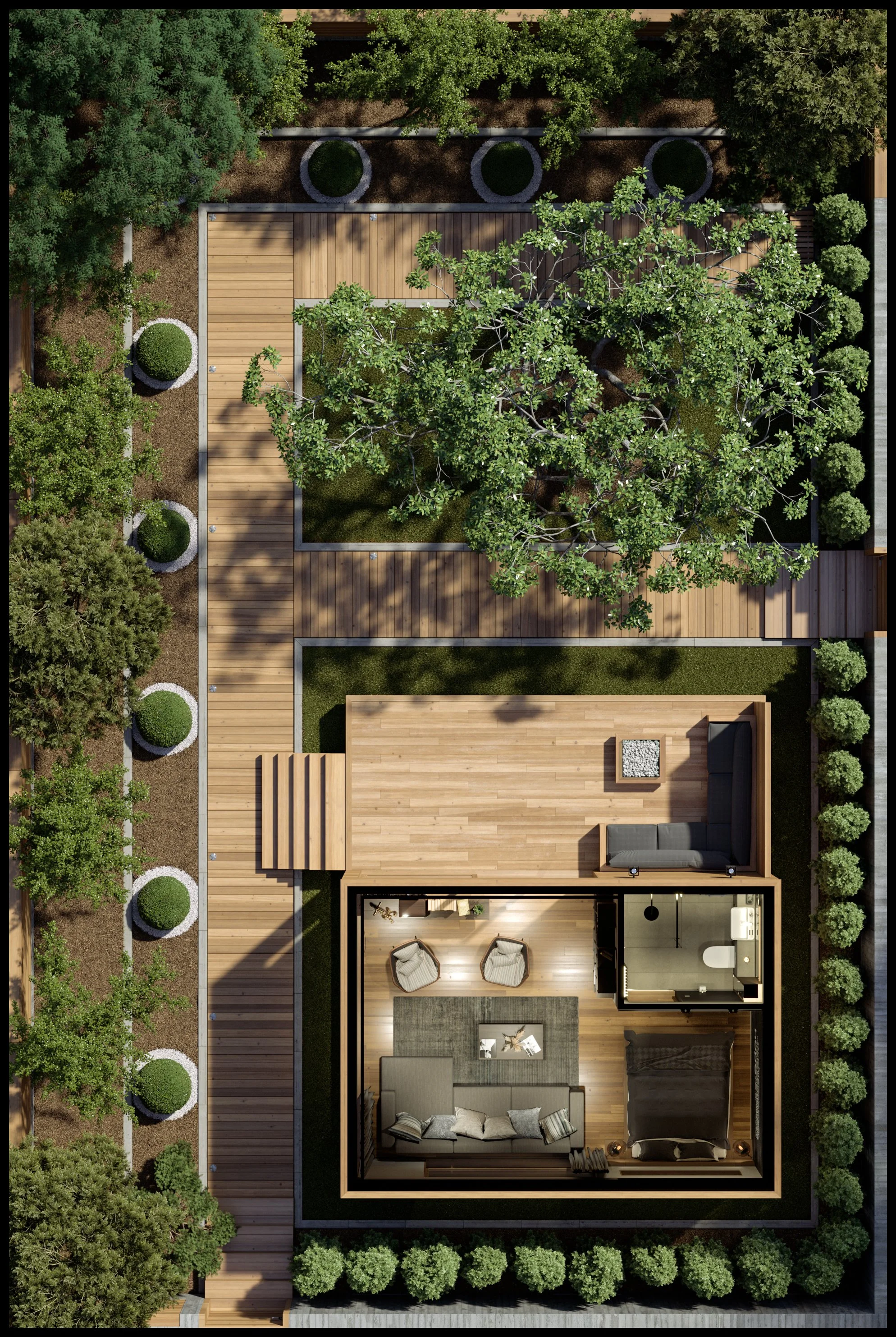 Exterior Garden House Building Development Visualization CGI Rendering Day Time