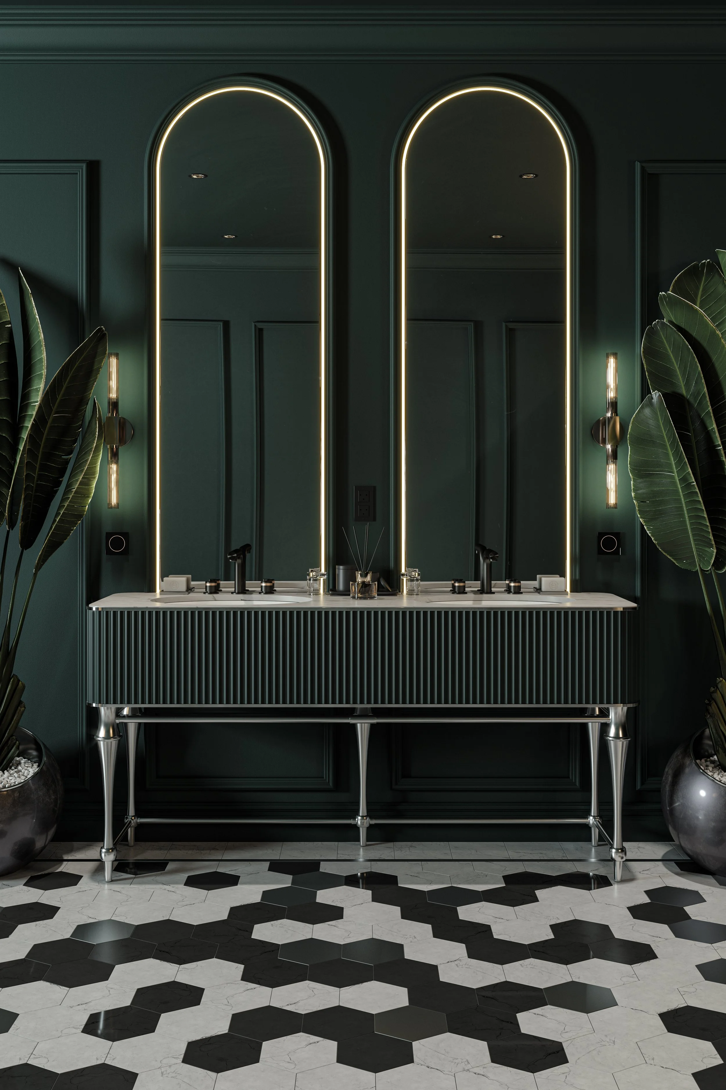 Bespoke Forest Green Bathroom 3D Architectural Visualization Rendering View fullsize