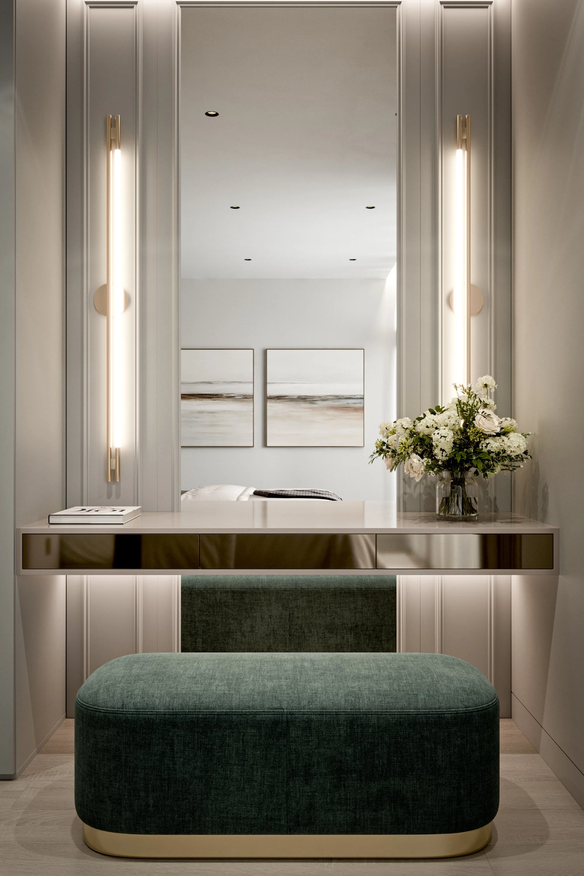 Dressing Table Space Room Bench Stool Mirror Interior Design Cream Beige Neutral Render CGI Services