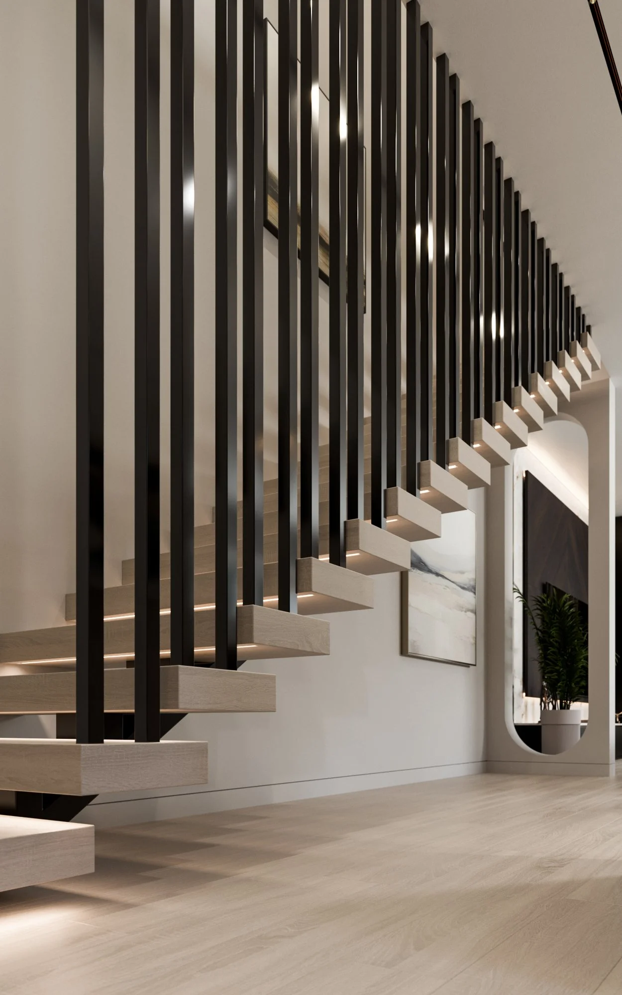 Custom Interior Staircase Design Visualization 3D Rendering