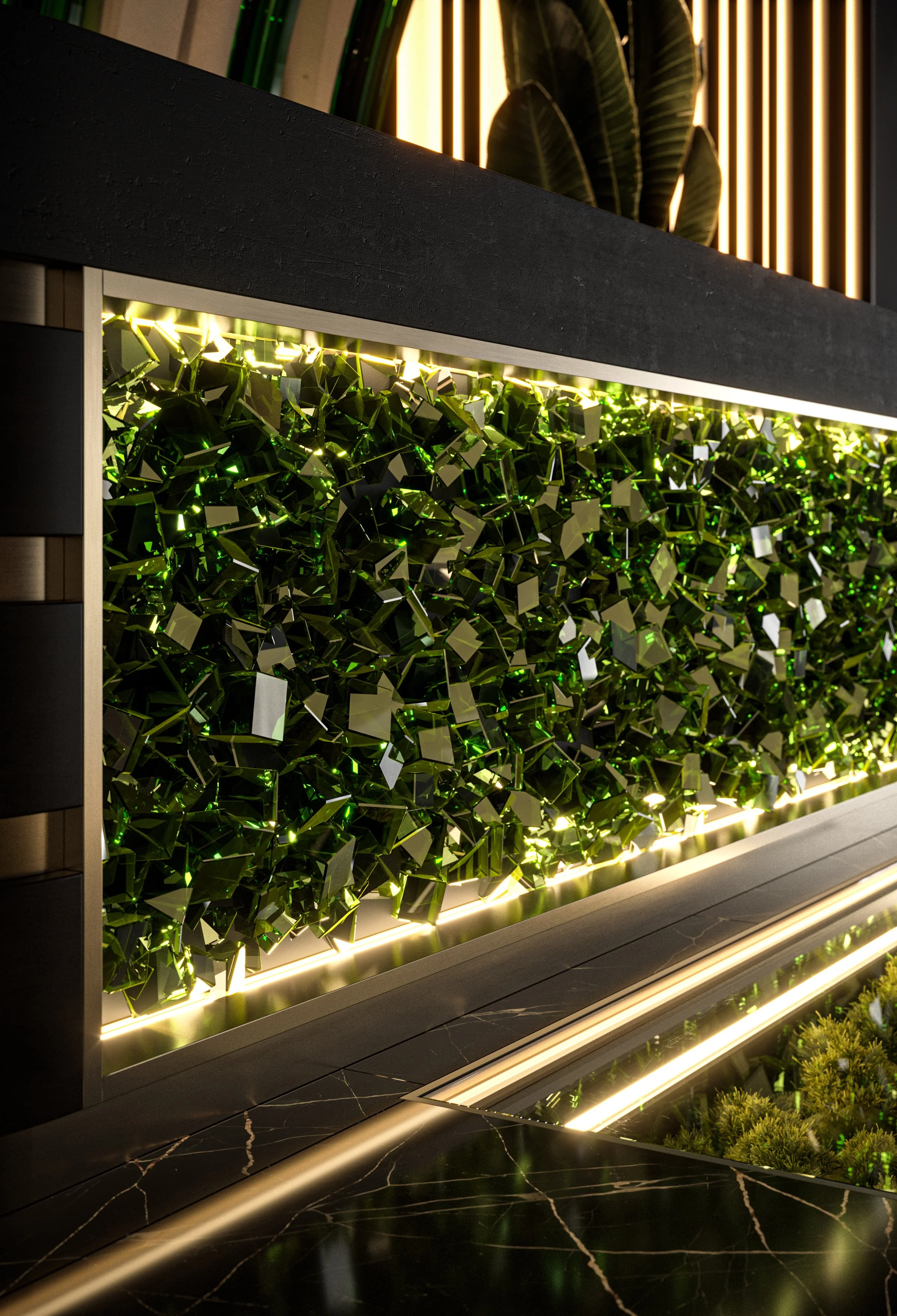 Forest Green Tropical Living Room Interior Design 3D Visualization Rendering View fullsize