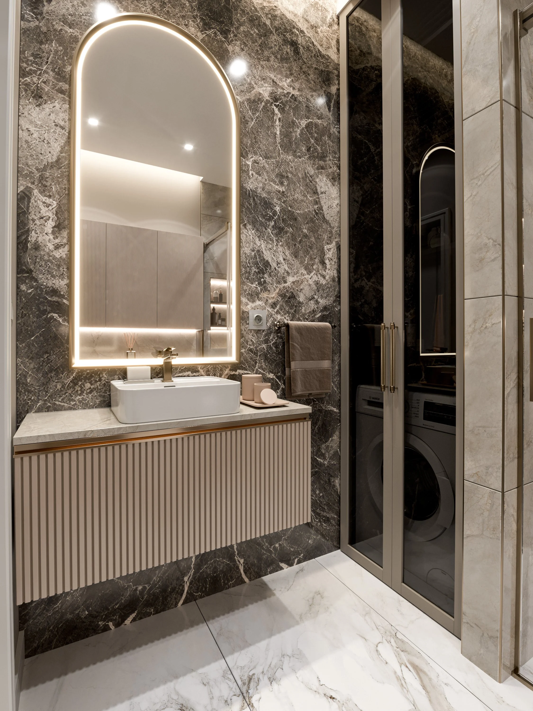 Wardrobe Design Interior CGI Visualization Render White Marble Mirror Closet