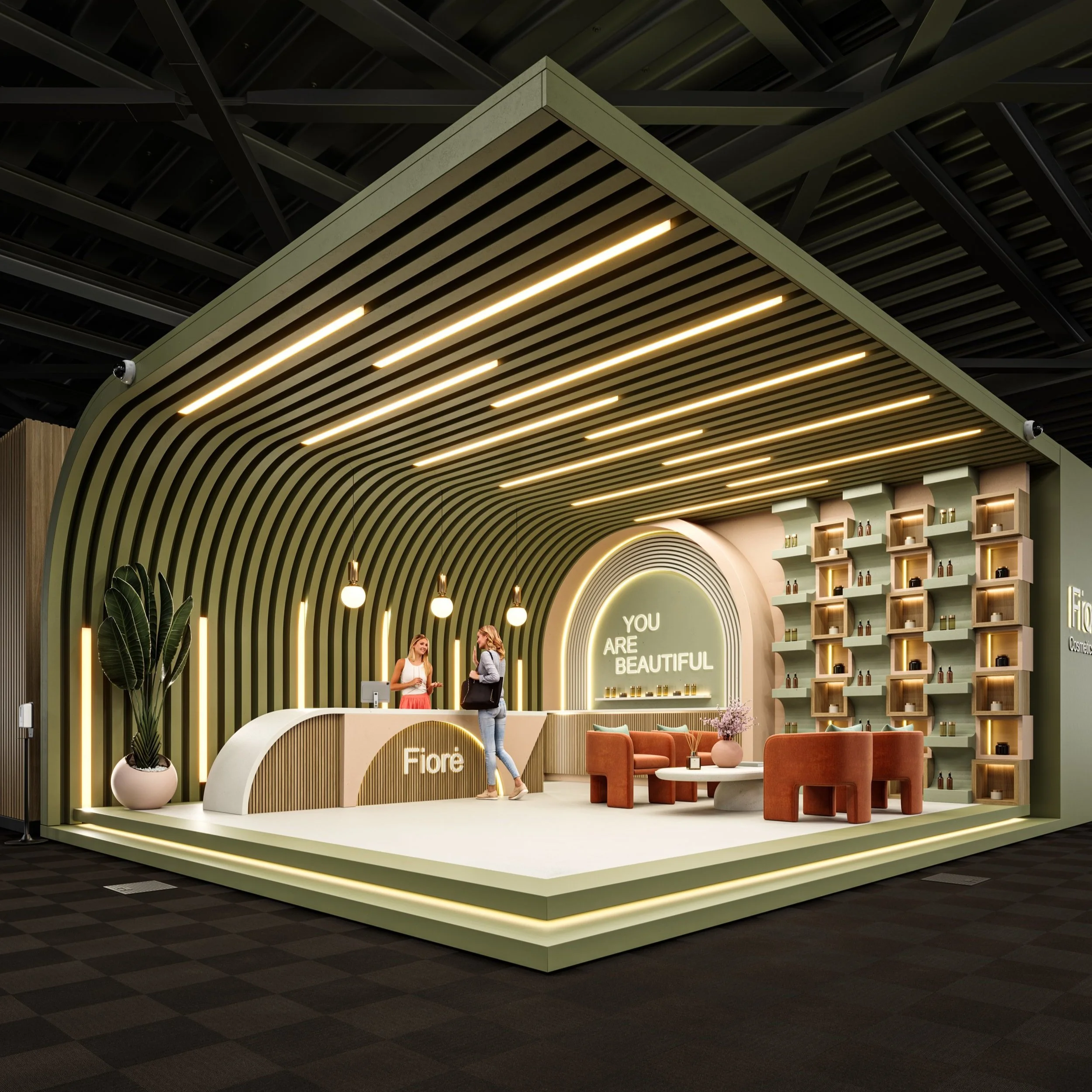 I can create stunning 3D exhibition design visualizations to showcase your product branding and marketing.